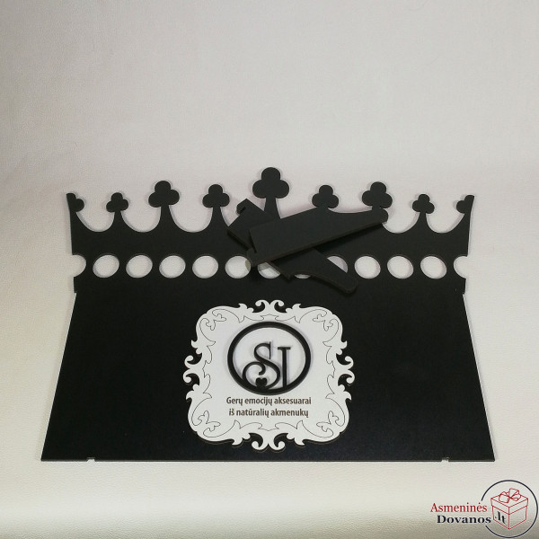 • Papuošalų kabykla, prekybai. Graviruojamas logotipas, tekstas, juodas.